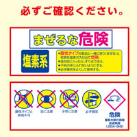 - 酸性タイプの製品と一緒に使う(まぜる)と有害な塩素ガスが出て危険。