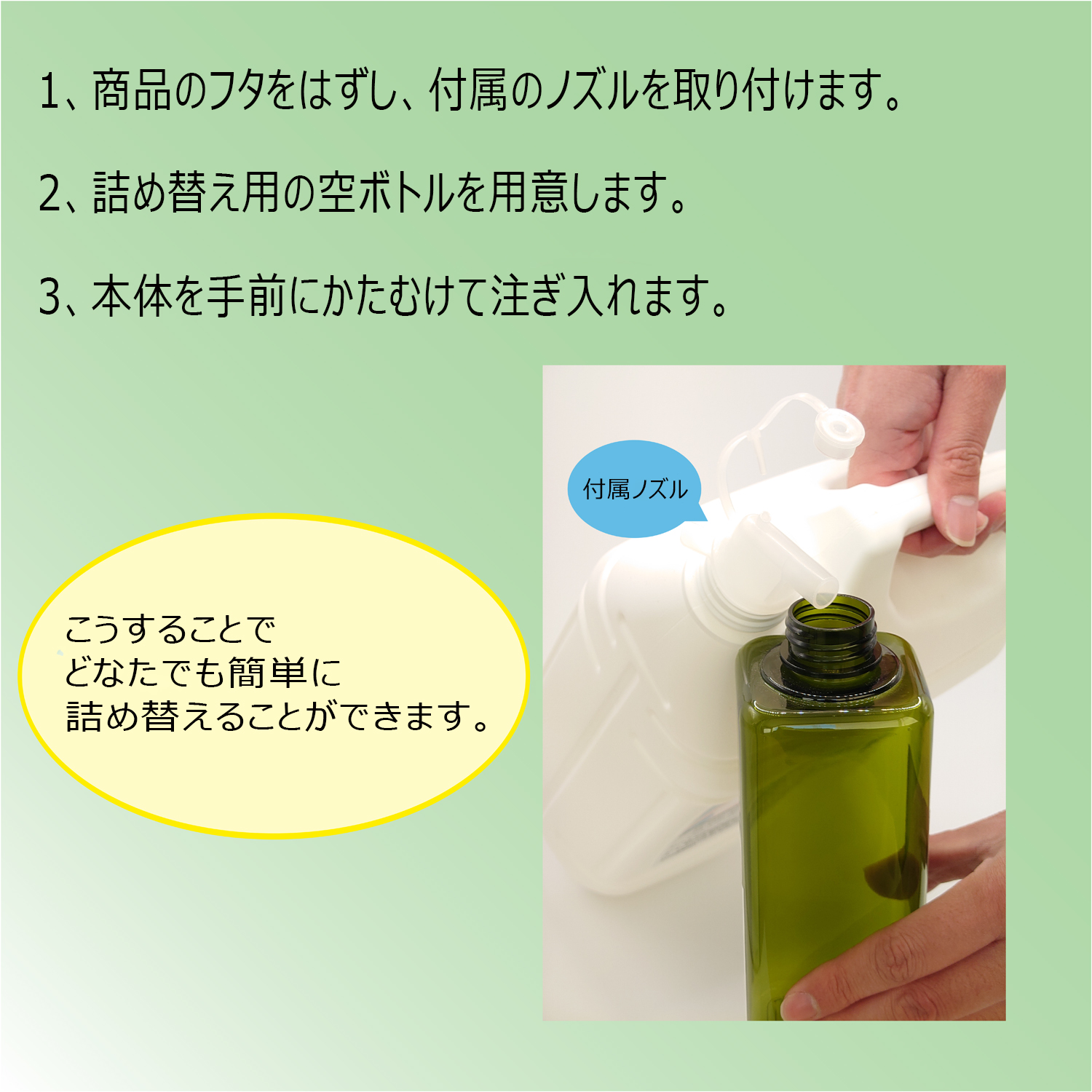 - つめかえるボトルをよく洗って乾かしてから詰替えてください